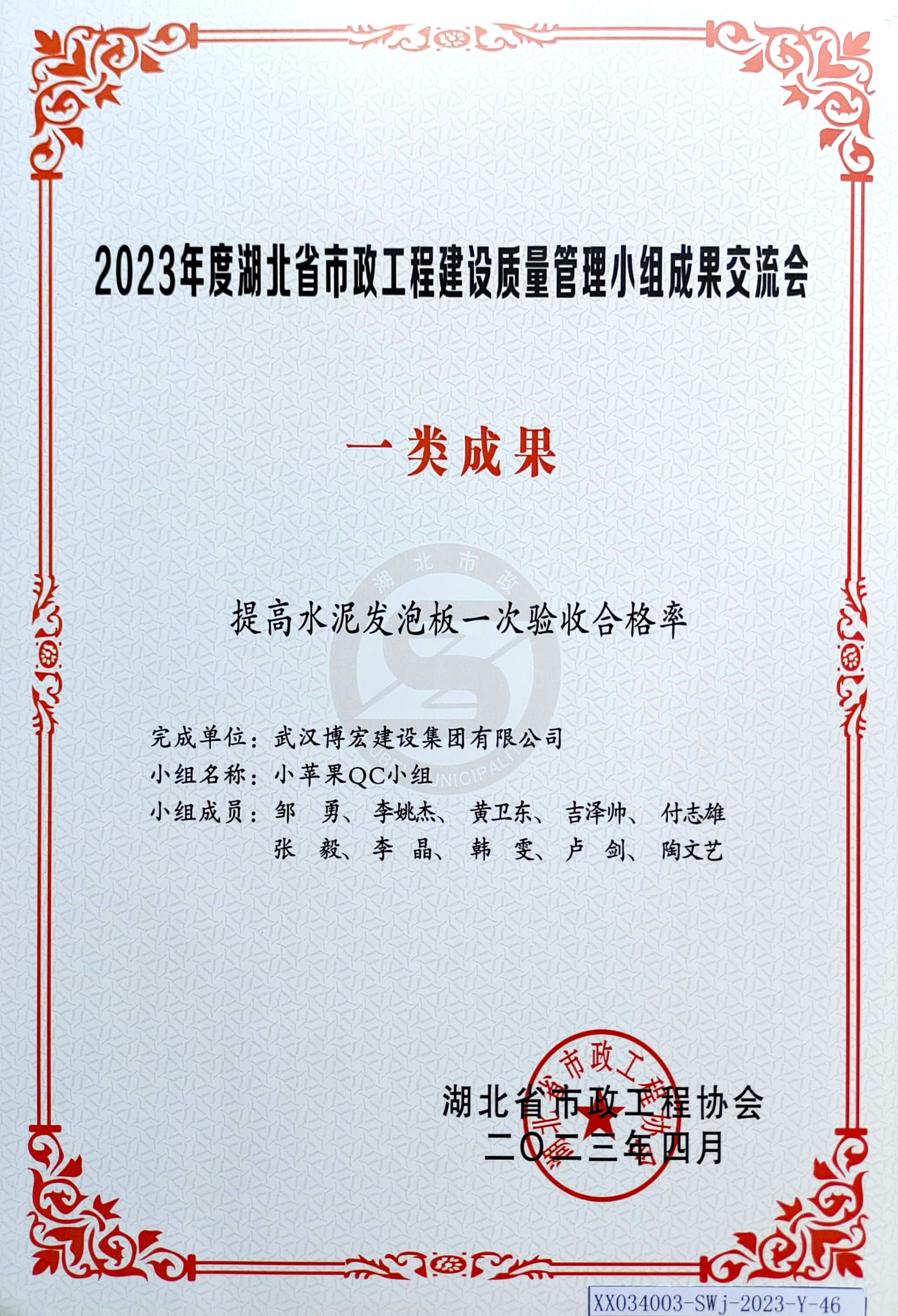 2023年度湖北省市政工程建設質(zhì)量管理小組成果交流會 一類成果