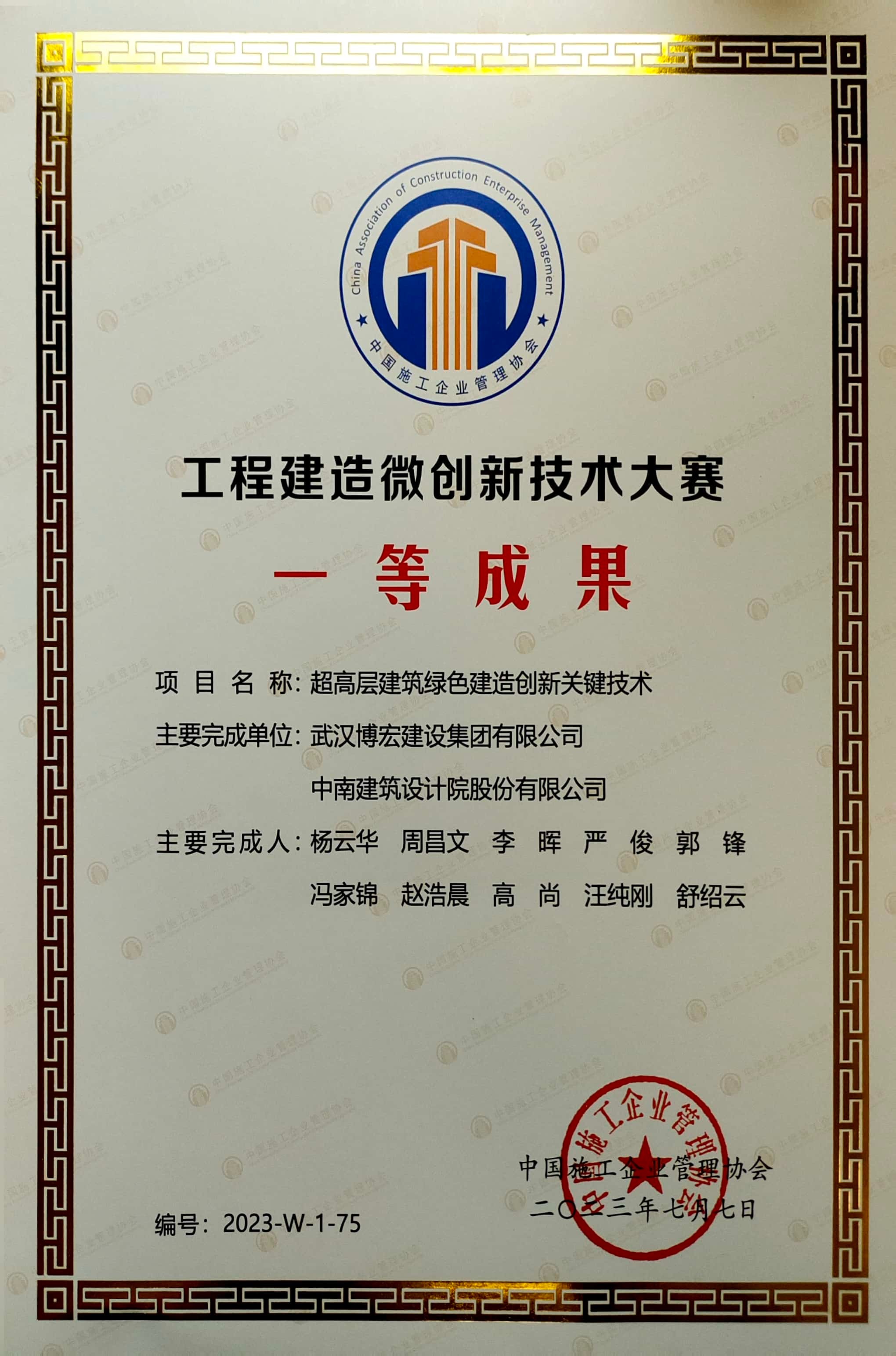 2023年中國施工管理企業(yè)協(xié)會-超高層建筑綠色建造創(chuàng)新關鍵技術-工程建造微創(chuàng)新技術大賽一等成果