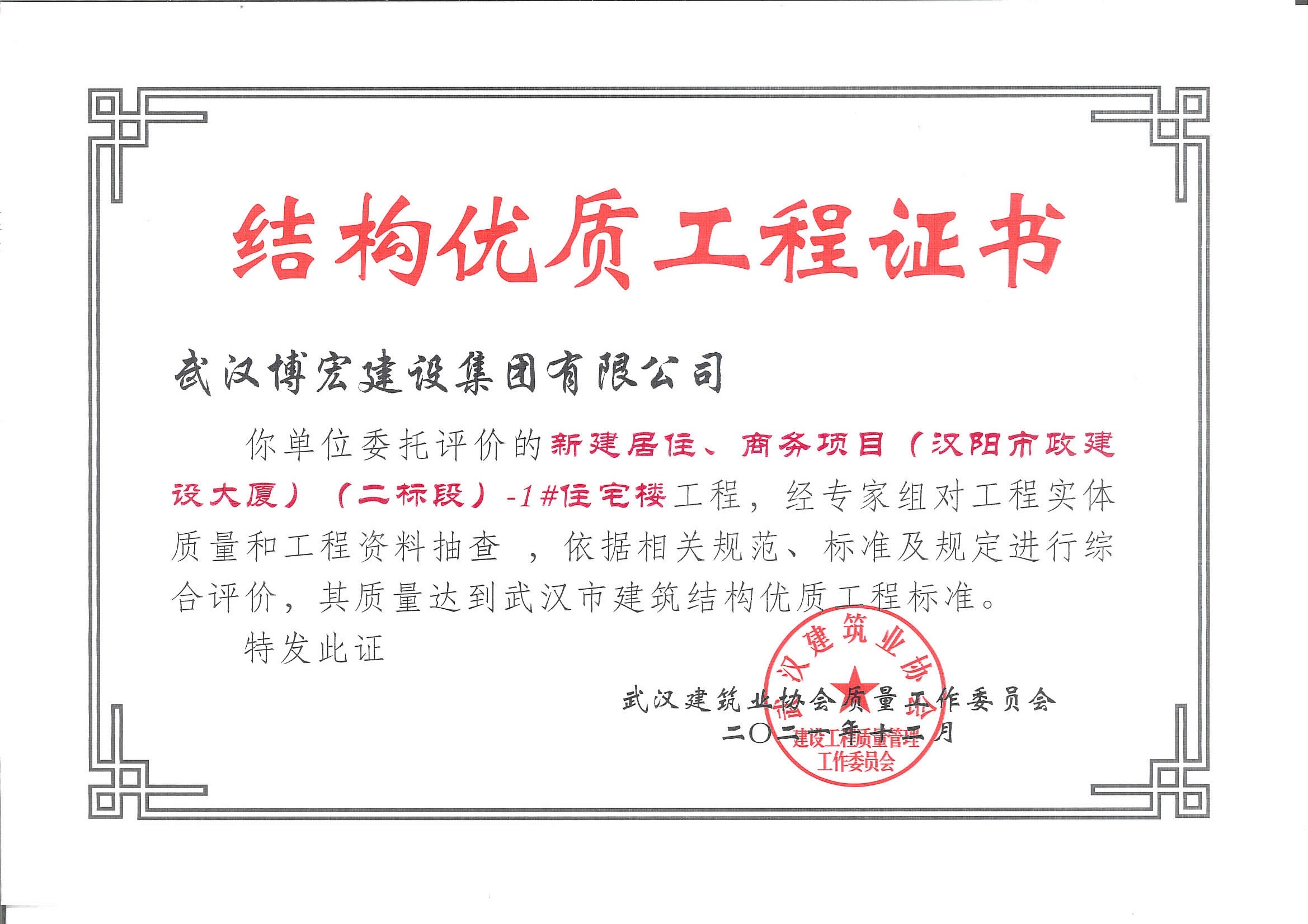 武漢市建筑結(jié)構(gòu)優(yōu)質(zhì)工程 漢陽市政大廈(二標(biāo)段)-1#住宅樓