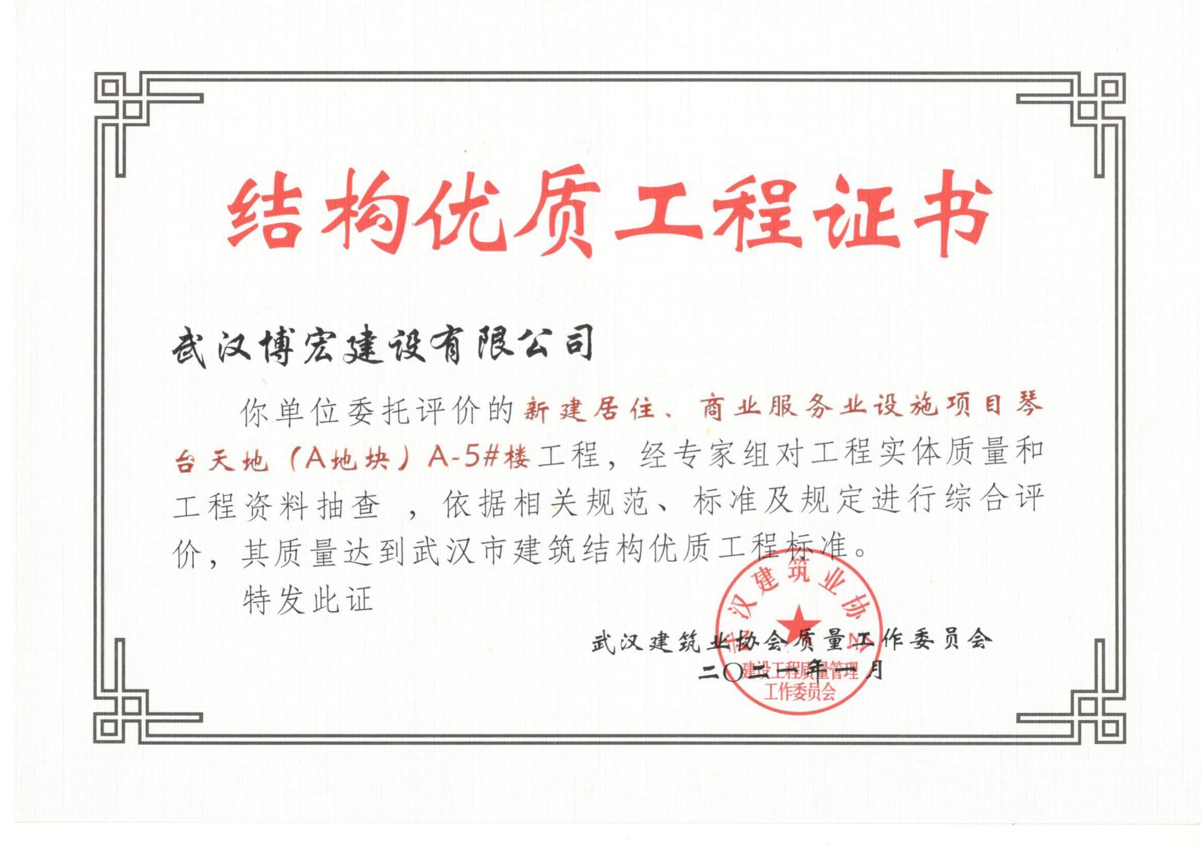 2021年武漢市結(jié)構(gòu)優(yōu)質(zhì)工程(琴臺天地(A地塊)5棟