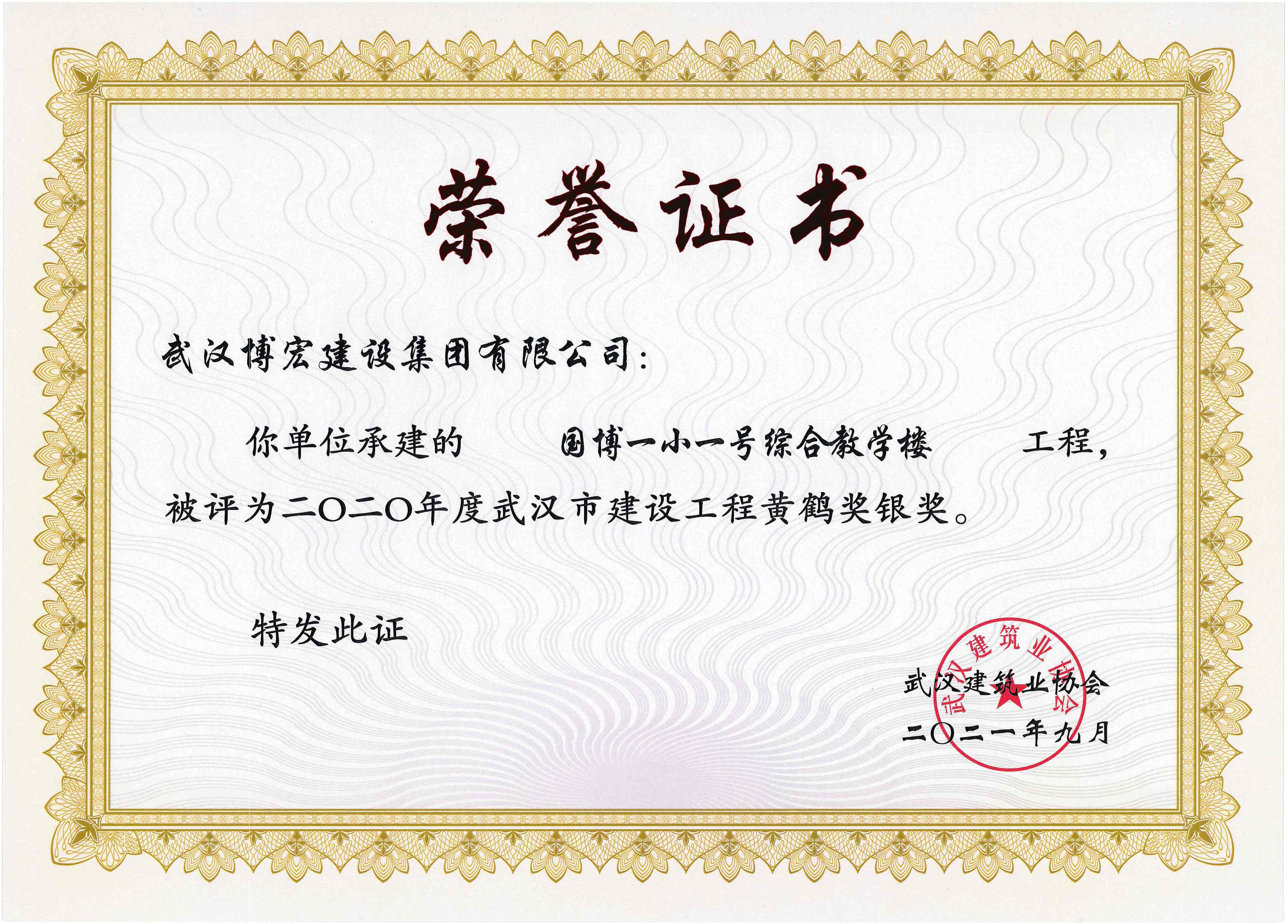 2020年度武漢市建設(shè)工程黃鶴獎銀獎-國博一小一號綜合教學(xué)樓