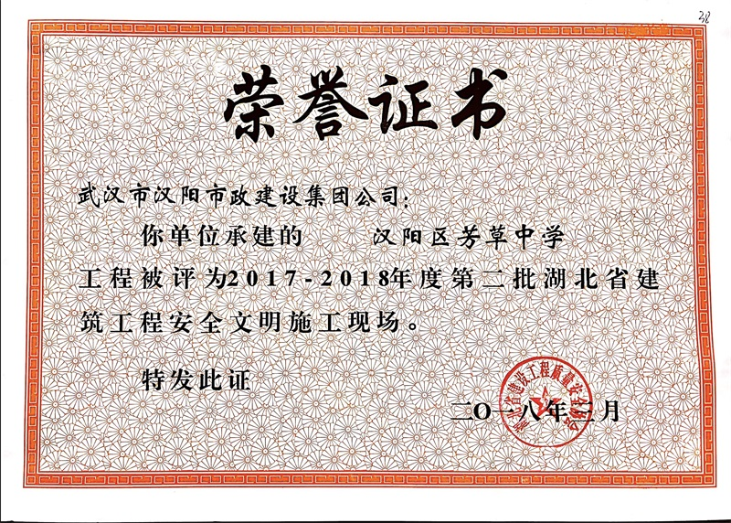 2017-2018年度第二批湖北省建筑工程安全文明施工現(xiàn)場(漢陽區(qū)芳草中學)
