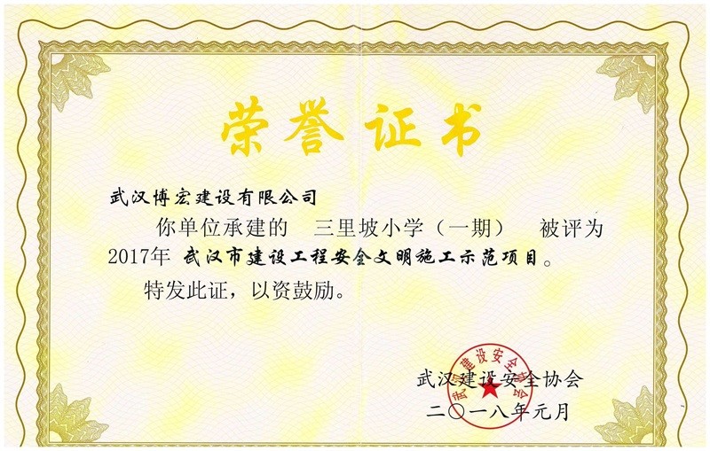武漢市建設工程安全文明施工示范項目(三里坡小學)