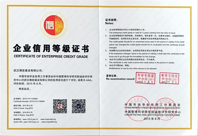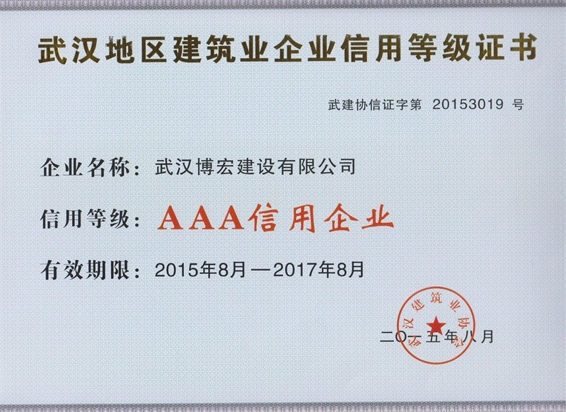 武漢地區(qū)建筑業(yè)企業(yè)信用等級證書