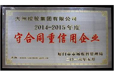 2016年7月27日上午,廈門市2014-2015年度守合同重信用企業(yè)經(jīng)驗交流暨表彰大會于國際會議中心隆重舉行。大洲控股集團有限公司榮獲“2014-2015年度廈門市守合同重信用企業(yè)”榮譽稱號。