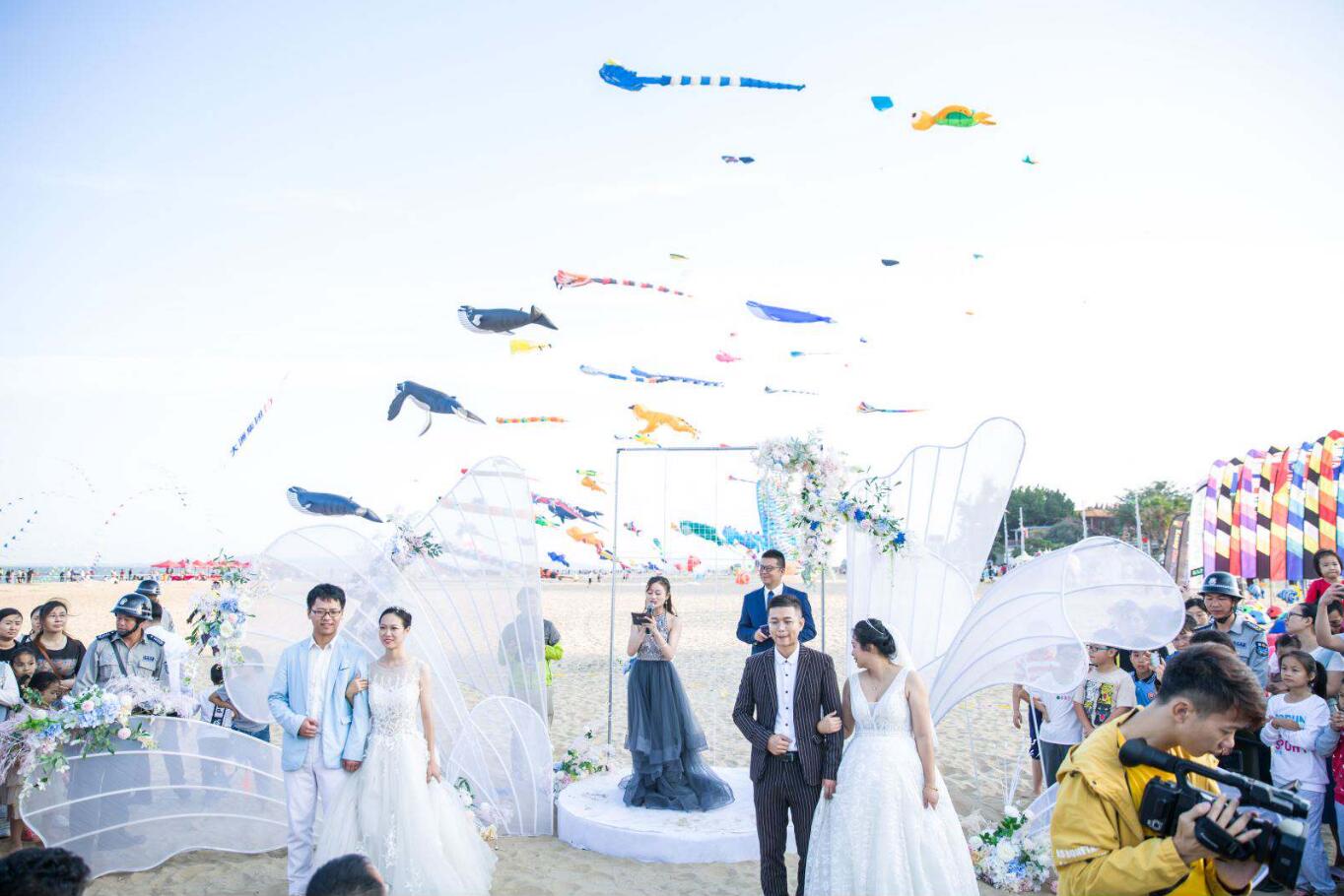 本次風(fēng)箏節(jié)最為溫馨的環(huán)節(jié)莫過于主辦方精心設(shè)置的風(fēng)箏婚禮,一對對新人在漫天彩鳶的包圍下,在大家的見證下,以風(fēng)箏為媒,舉辦了獨(dú)一無二的風(fēng)箏婚禮,收獲了滿滿的感動與祝福。
