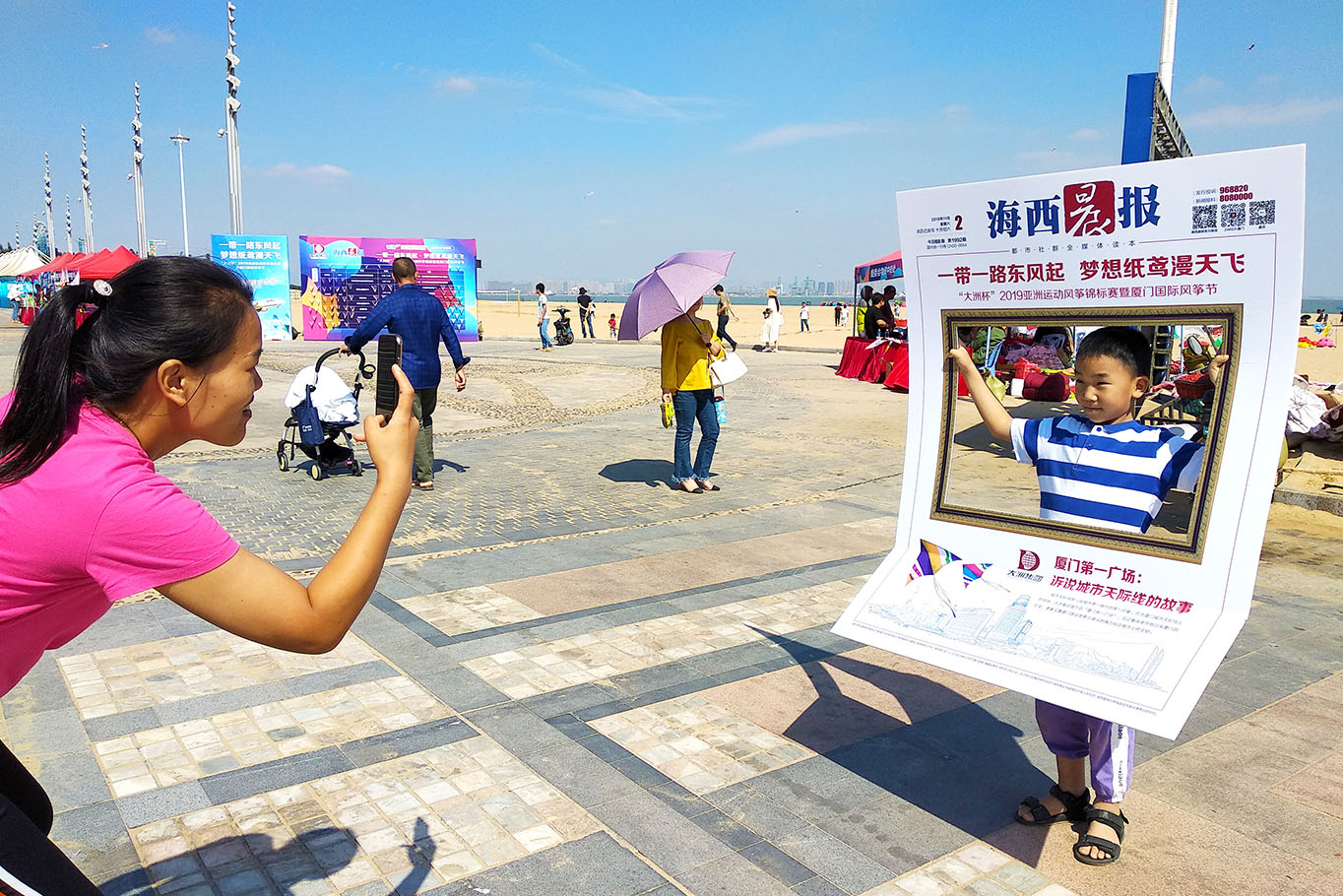 在風(fēng)箏節(jié)現(xiàn)場,大洲集團(tuán)與海西晨報(bào)共同準(zhǔn)備了拍照神器———“城市天際線”主題取景框,吸引了許多市民在風(fēng)箏節(jié)現(xiàn)場留下與天際線的最美合影。