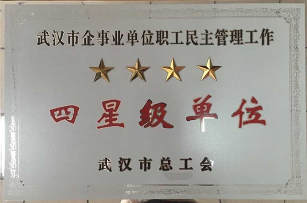 近日,我公司喜獲“武漢市企事業(yè)單位職工民主管理工作四星級(jí)單位”榮譽(yù)稱號(hào)。該項(xiàng)榮譽(yù)的獲得是對(duì)公司民主管理工作的充分肯定。