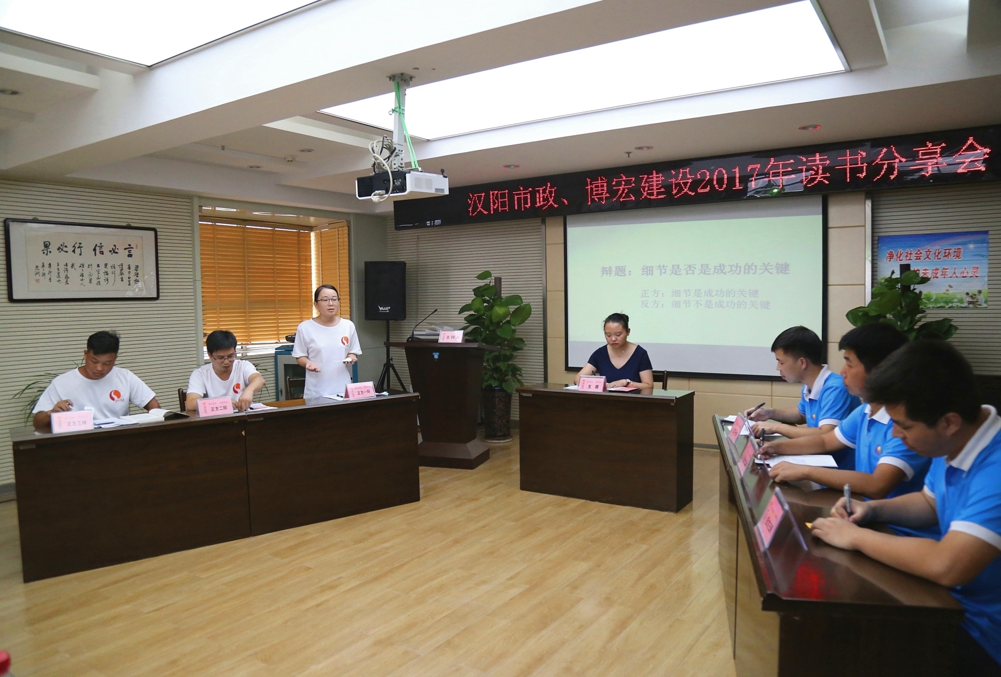 為進(jìn)一步引發(fā)大家思考,倡導(dǎo)真理越辯越明,一場(chǎng)題為“細(xì)節(jié)是否是成功的關(guān)鍵”的辯論賽在大家的掌聲中正式開(kāi)始,正反雙方結(jié)合《細(xì)節(jié)決定成敗》內(nèi)容,互不相讓?zhuān)樹(shù)h相對(duì),拿數(shù)據(jù)、擺事實(shí)、說(shuō)典故,對(duì)什么是細(xì)節(jié)、細(xì)節(jié)重要還是大局方向重要等主要問(wèn)題展開(kāi)了激烈的交鋒,同時(shí)也引來(lái)了場(chǎng)下一陣又一陣的掌聲。