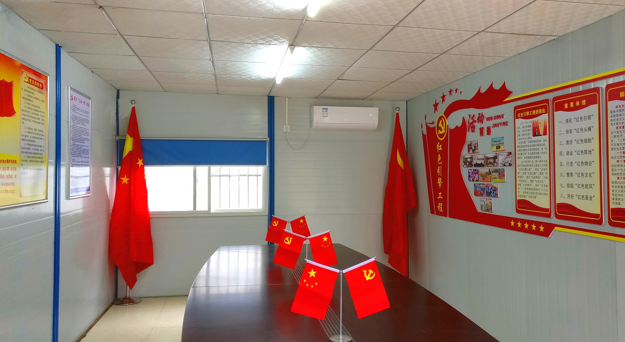 為做好本次工地一線黨建氛圍營造工作,公司派專人前往正信花園項目現(xiàn)場開展測量、設計,將十九大報告中最能反映人民心聲與呼聲的十二條“金句”摘選出來有機融入項目部花園景觀,精心設計黨員活動室,營造濃厚氛圍,將黨的引領作用深入項目一線。“信義之道,工匠之心”,時代呼喚工匠精神,一條凝練著漢陽市政企業(yè)文化精髓的巨幅墻面畫赫然鋪滿在項目部迎面右側,讓“誠信、務實、擔當、精進”的價值觀在耳濡目染中融入企業(yè)職工心間,推動項目建設更上層樓。