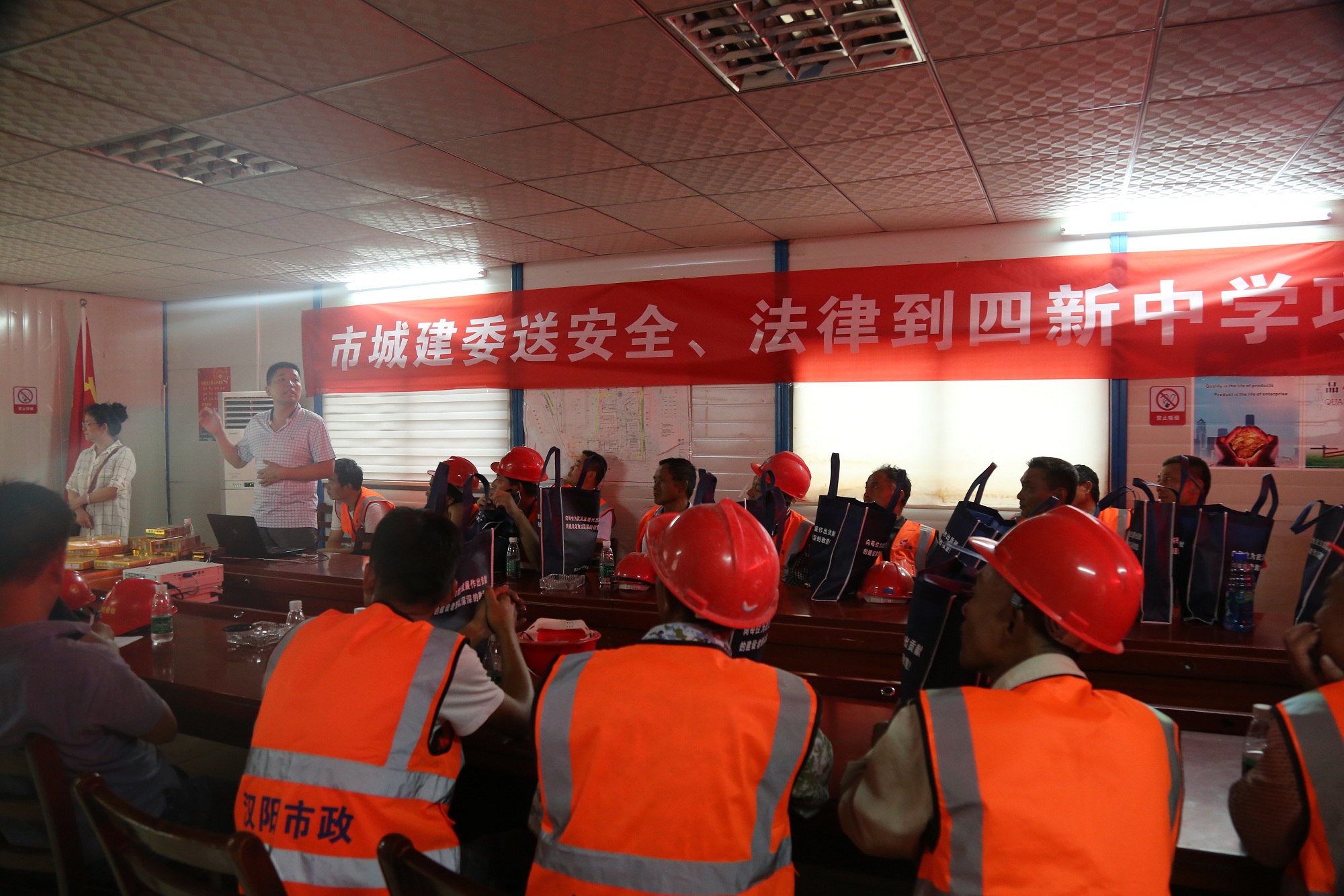 當(dāng)天下午,武漢四新中學(xué)建設(shè)項目再次迎來一批客人,武漢市城建委邀請建筑安全、法律專業(yè)講師來到項目農(nóng)民工業(yè)余學(xué)校,集中對40余名工友進(jìn)行了安全及法律培訓(xùn),并為辛苦一天的工友送上慰問品一份。培訓(xùn)中采取“講述+互動”的形式,廣大工友爭相回答培訓(xùn)中提出的相關(guān)問題,現(xiàn)場掌聲不斷,氣氛活躍,民工參與度極高,整場培訓(xùn)充分展現(xiàn)了公司對農(nóng)民工教育的優(yōu)異成果,也進(jìn)一步提升了廣大工友的安全法律意識。