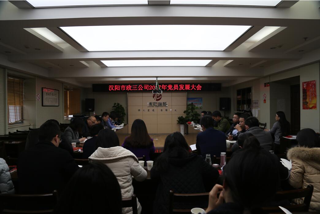 2017年12月23日,漢陽市政三公司支部全體黨員在公司大會議室召開黨員發(fā)展及轉(zhuǎn)正大會,大會同意郭文婷、劉海軍、閔慧子三名同志轉(zhuǎn)為中共正式黨員,接收向濤、紀(jì)成成兩名同志為中共預(yù)備黨員。大會由支部副書記郭一清主持。