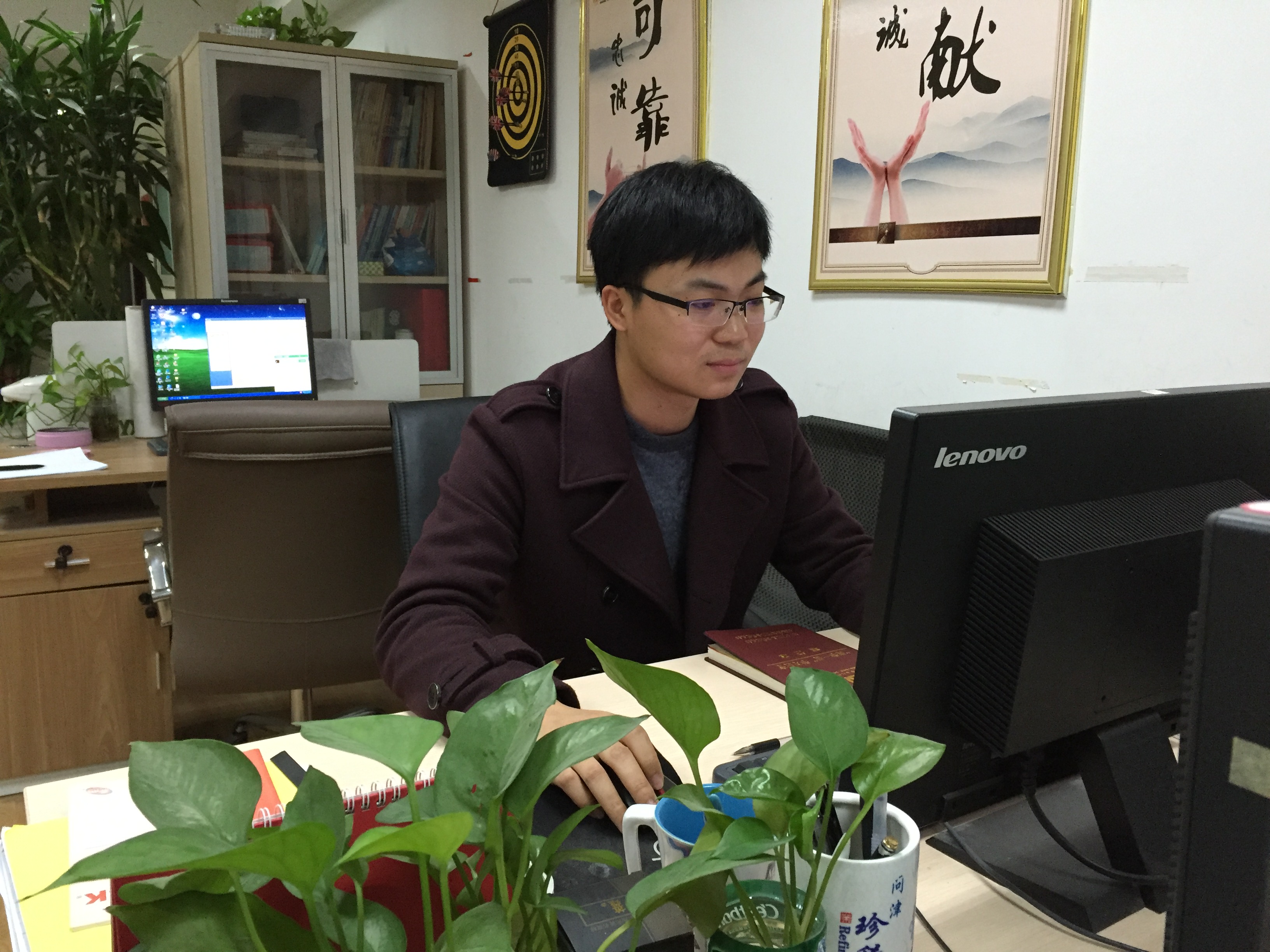 一個(gè)瘦高的90后小伙子,初見(jiàn)時(shí),他正忙于工作,在電腦桌前敲打著什么,正擔(dān)心會(huì)打擾他時(shí),他卻已經(jīng)熱情地招呼著我們坐下,當(dāng)?shù)弥覀兿胍稍L他時(shí),他顯得既有點(diǎn)靦腆,又有點(diǎn)驚喜,他就是今天我們的主人公——周昌文。