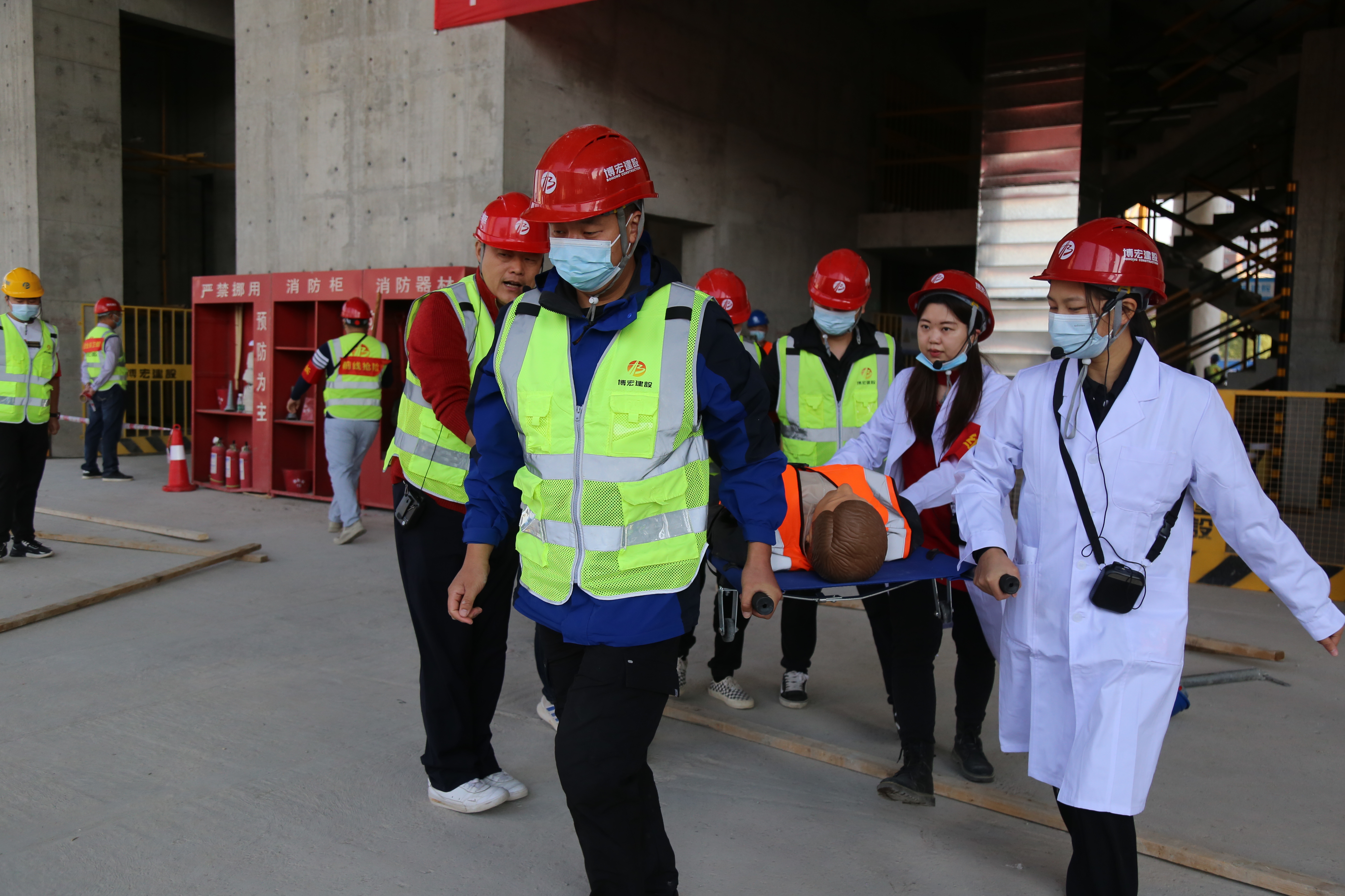 此次演練以物體打擊救援應(yīng)急為重點(diǎn)演練科目,展示了高空墜物工人受傷事故現(xiàn)場(chǎng)的應(yīng)急救援預(yù)案。演練現(xiàn)場(chǎng),各小組分工明確、反應(yīng)迅速,搶險(xiǎn)救援組負(fù)責(zé)搶險(xiǎn),醫(yī)療組負(fù)責(zé)人員醫(yī)療救治,警戒組負(fù)責(zé)現(xiàn)場(chǎng)警戒和疏散管控,調(diào)查取證組查明事故原因,通訊聯(lián)絡(luò)組對(duì)接生命通道,應(yīng)急小組待“傷員”被送上擔(dān)架,送往醫(yī)院后,隨即舉行事故原因分析會(huì)總結(jié)經(jīng)驗(yàn)教訓(xùn)。緊張有序的全套流程,展示了項(xiàng)目團(tuán)隊(duì)強(qiáng)烈安全生產(chǎn)意識(shí)和自救互救能力。