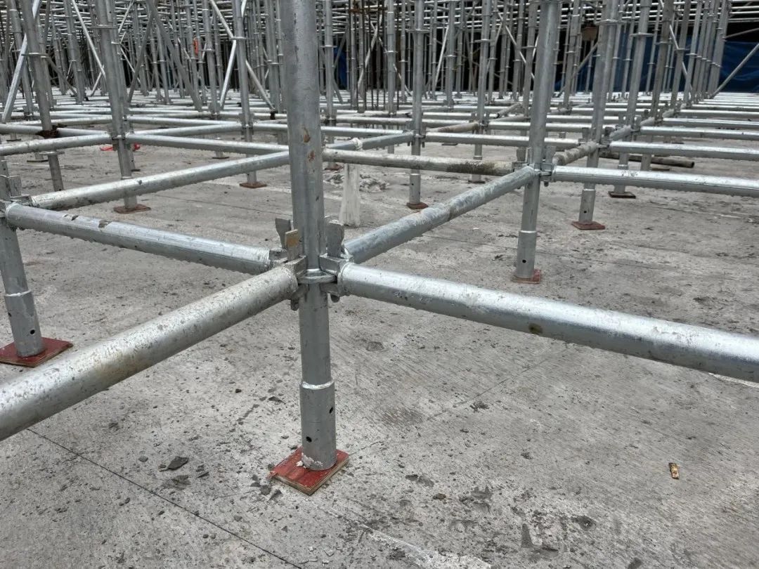 盤扣式腳手架立桿采用低合金結(jié)構(gòu)(國標(biāo)Q345B),強度高于傳統(tǒng)腳手架碳鋼管(國標(biāo)Q235)1.5-2倍,主要構(gòu)件采用內(nèi)外熱鍍鋅防腐工藝,既提高了產(chǎn)品壽命,又做到了外觀整潔、美觀。