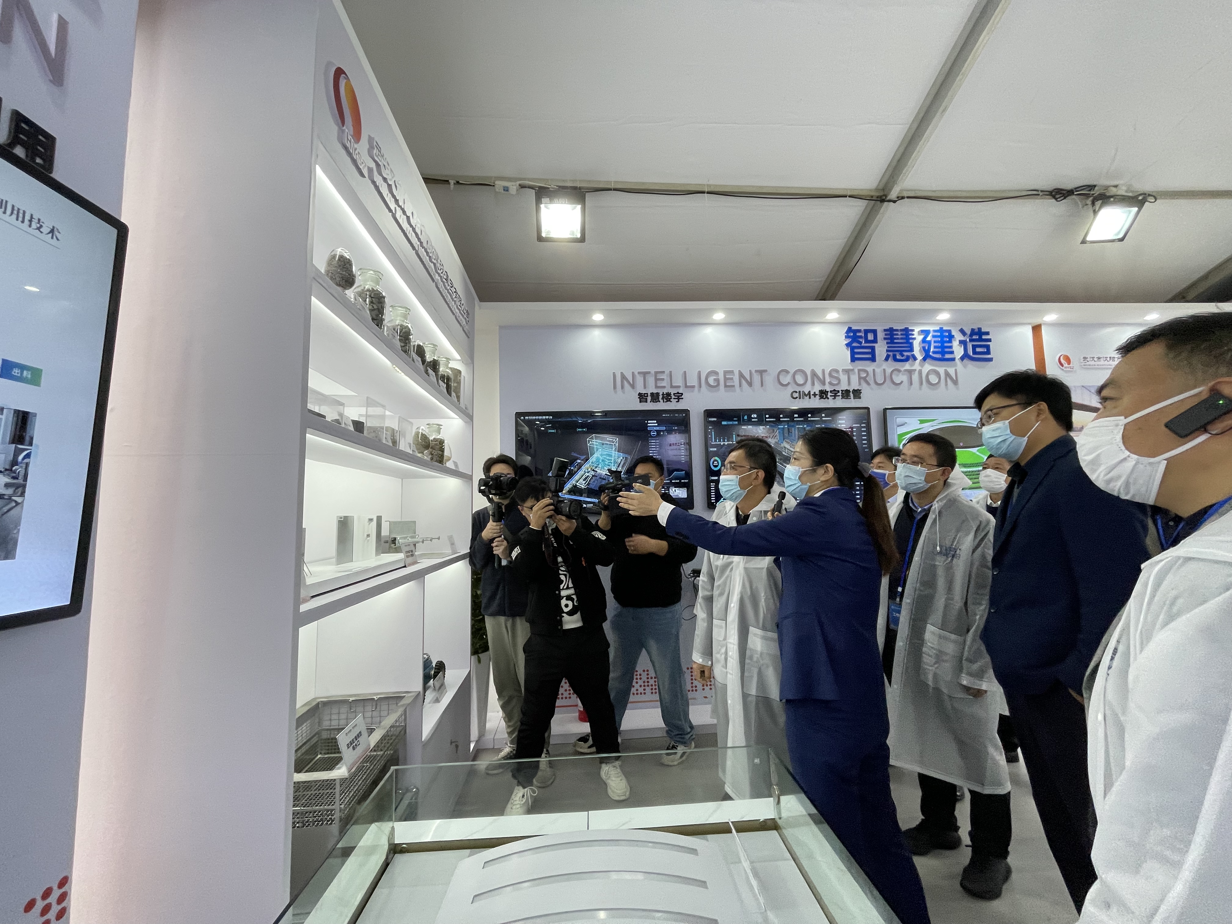 房建創(chuàng)新技術(shù)區(qū)展示了公司8項(xiàng)代表性創(chuàng)新技術(shù)。宜昌市天創(chuàng)覽江府和攬?jiān)赂?xiàng)目均使用裝配式后澆帶保護(hù)墻、墻體預(yù)制管線槽和智慧噴淋系統(tǒng)等技術(shù),在創(chuàng)新技術(shù)的加持下,將大幅度推動(dòng)高品質(zhì)建造,助力高品質(zhì)生活,為城市的綠色發(fā)展貢獻(xiàn)企業(yè)力量。
