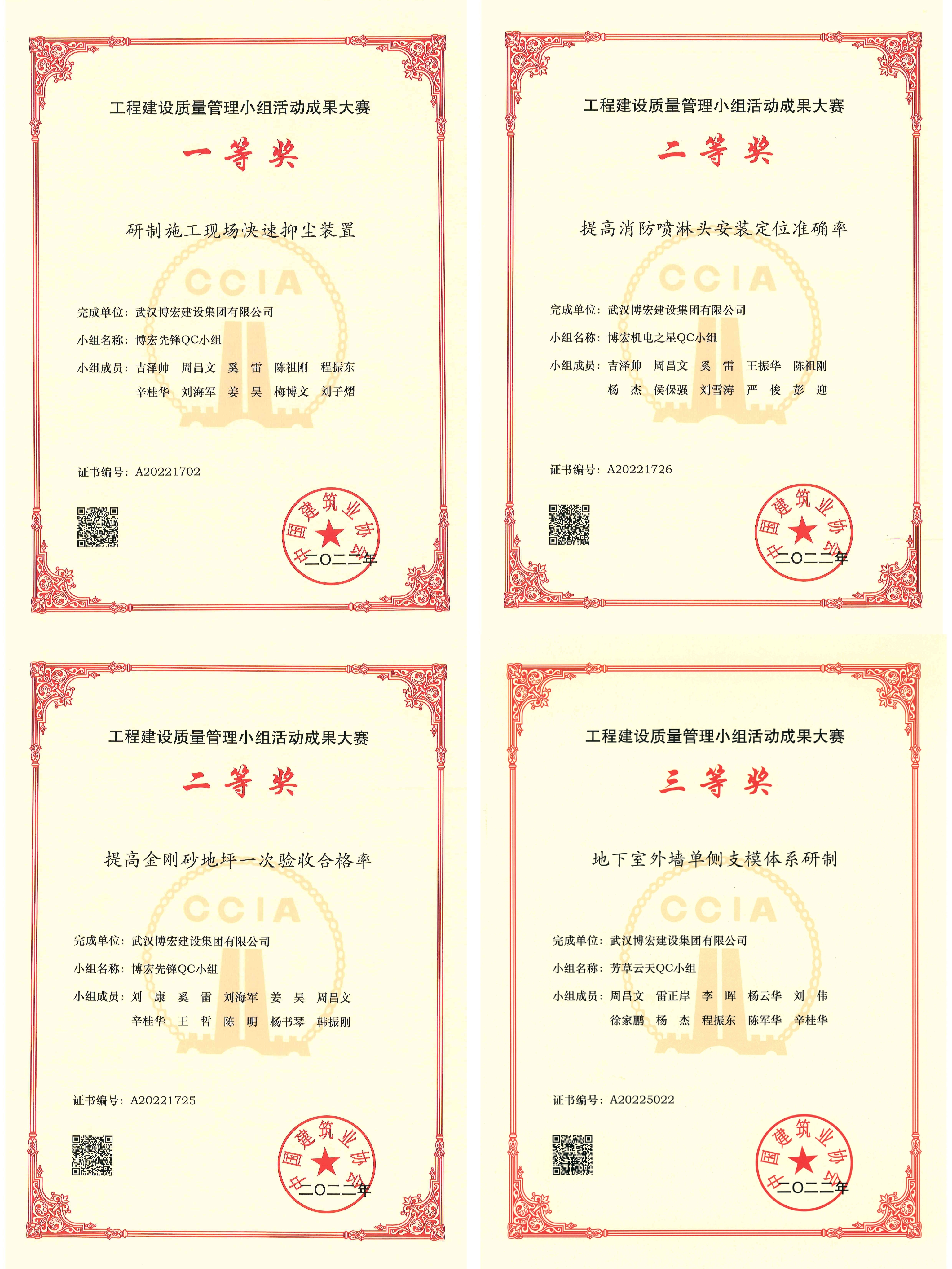 近日,由中國建筑業(yè)協(xié)會主辦的“2022年工程建設(shè)質(zhì)量管理小組活動成果大賽”獲獎名單公布,博宏建設(shè)集團(tuán)榮獲4個獎項。