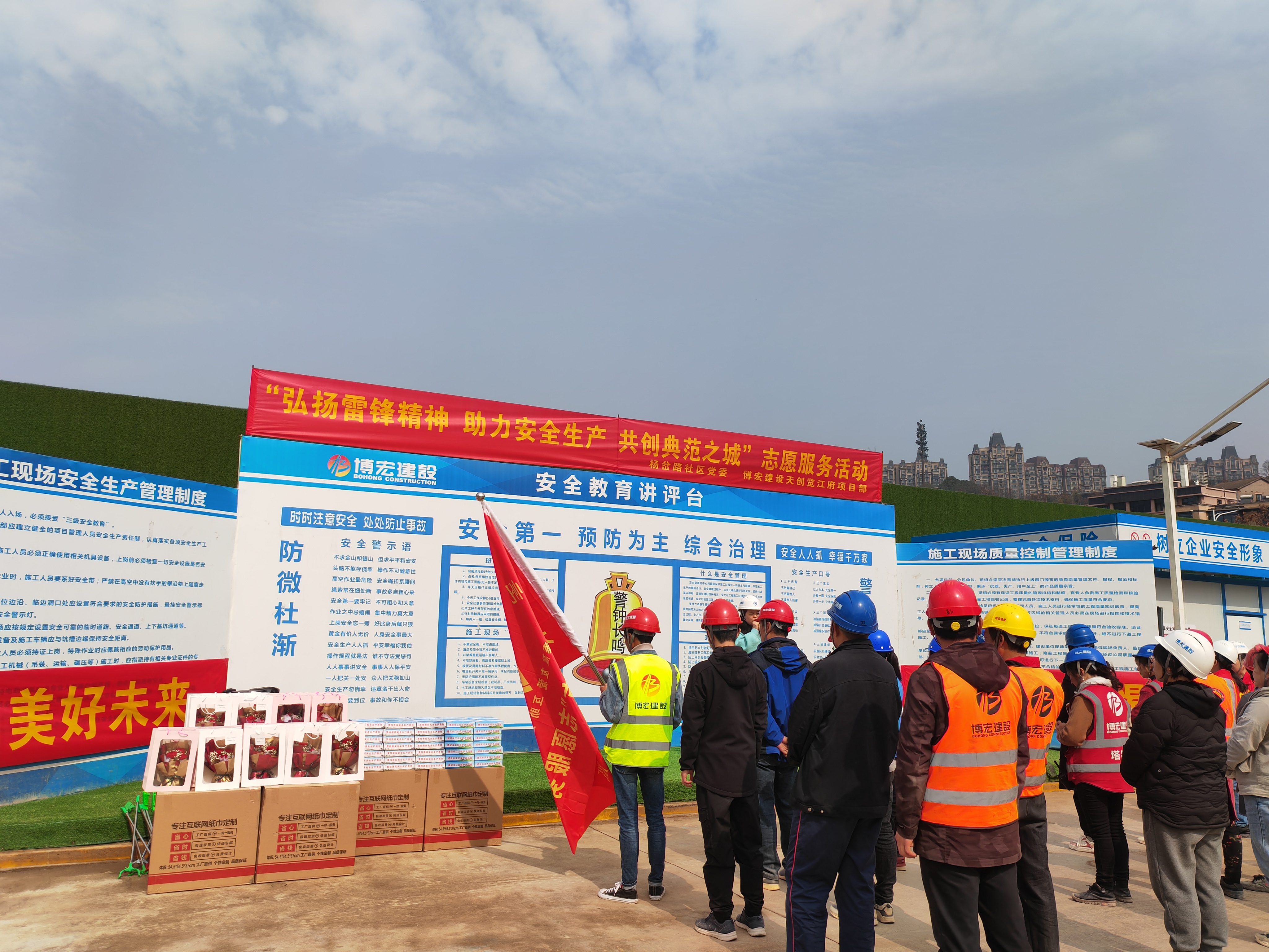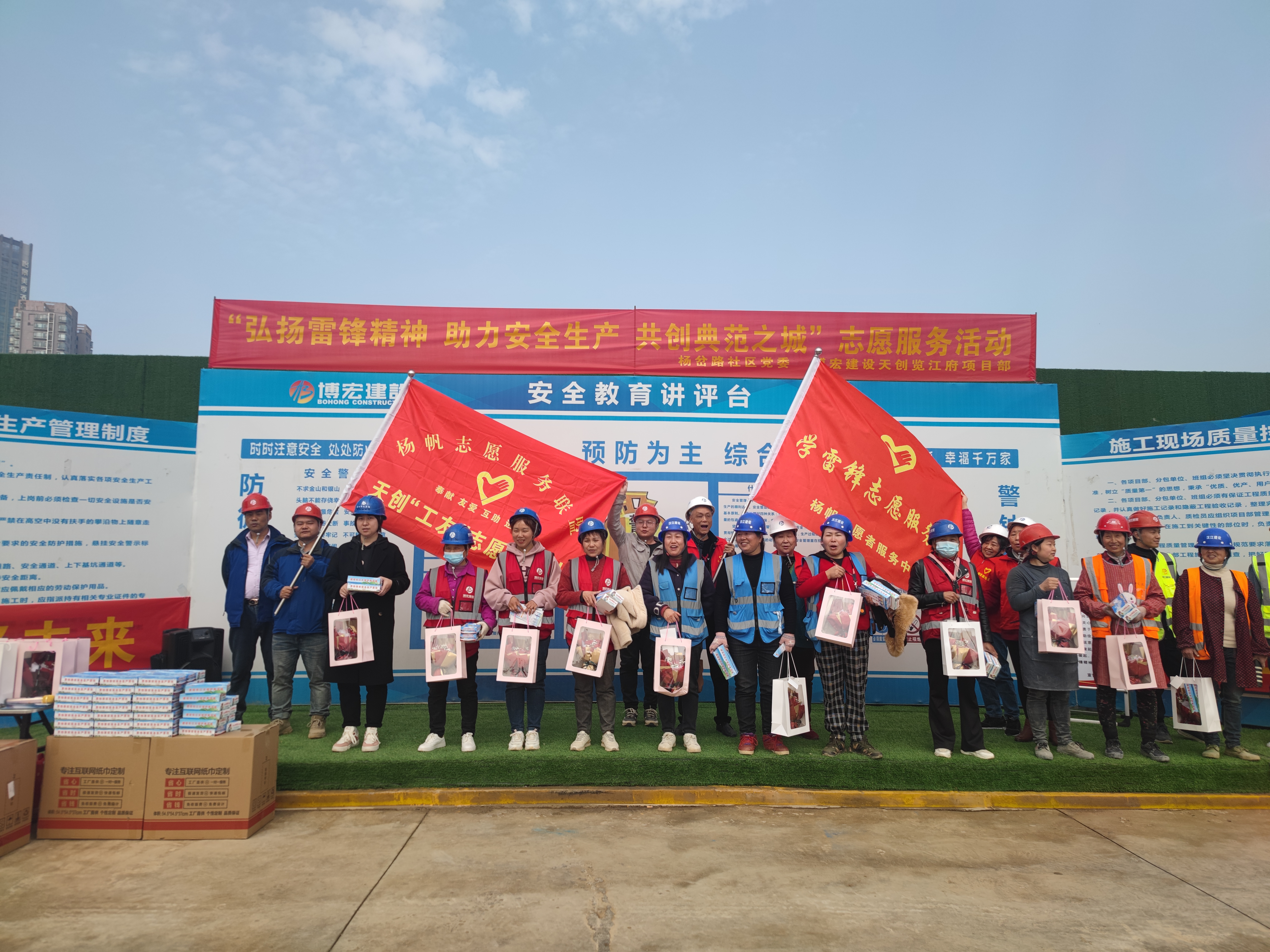在第60個“學(xué)雷鋒紀念日”和“三八”女神節(jié)來臨之際,博宏建設(shè)集團天創(chuàng)覽江府項目部聯(lián)合楊岔路社區(qū)黨委、楊帆志愿者服務(wù)中心開展“弘揚雷鋒精神,助力安全生產(chǎn),共創(chuàng)典范之城”主題志愿服務(wù)活動,為堅守在項目一線辛勤耕耘的城市建設(shè)者們提供多種多樣的便民服務(wù)及健康義診,30余名職工代表、農(nóng)民工代表、社區(qū)“守心”醫(yī)療志愿者參加活動。