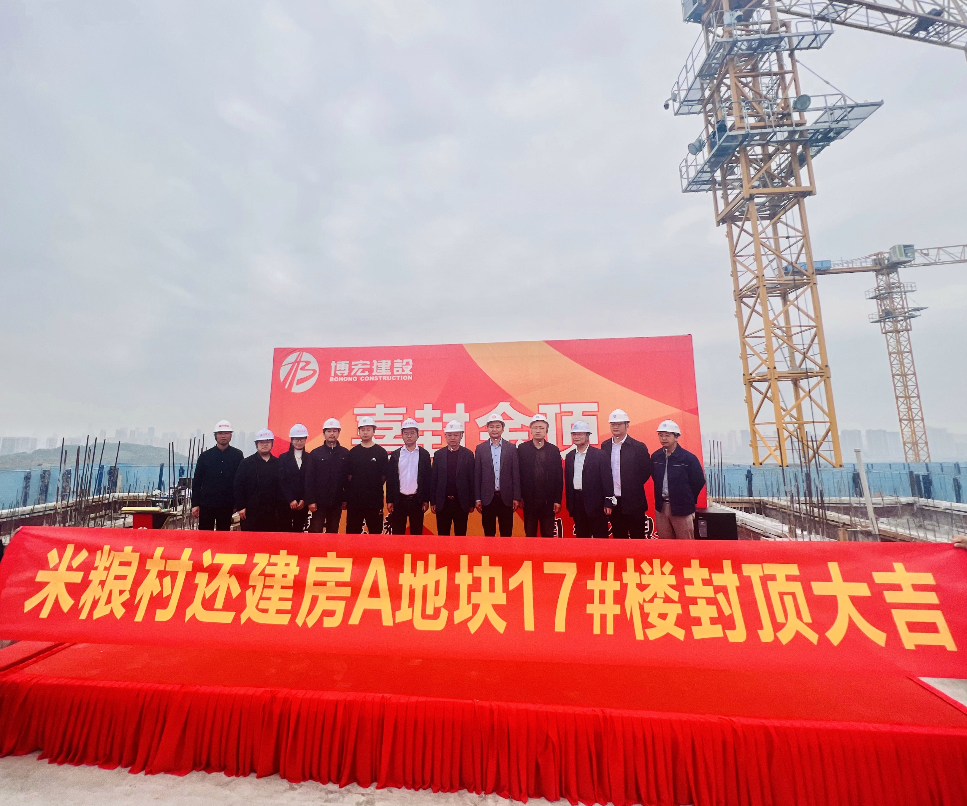 4月28日上午10時(shí),伴隨著最后一方混凝土澆筑到位,米糧村還建房A地塊17#樓主體結(jié)構(gòu)順利封頂,提前15天完成該工期目標(biāo)。博宏建設(shè)集團(tuán)常務(wù)副總經(jīng)理奚雷及各參建單位代表出席此次封頂儀式共同見(jiàn)證這一重要時(shí)刻。