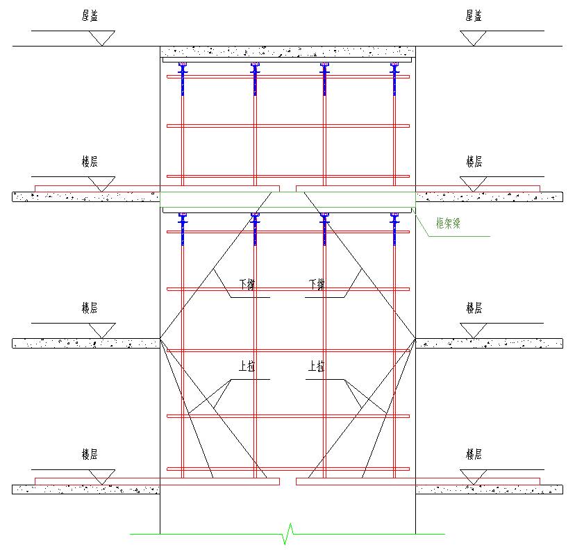 高空懸挑結(jié)構(gòu)支撐體系立面示意圖