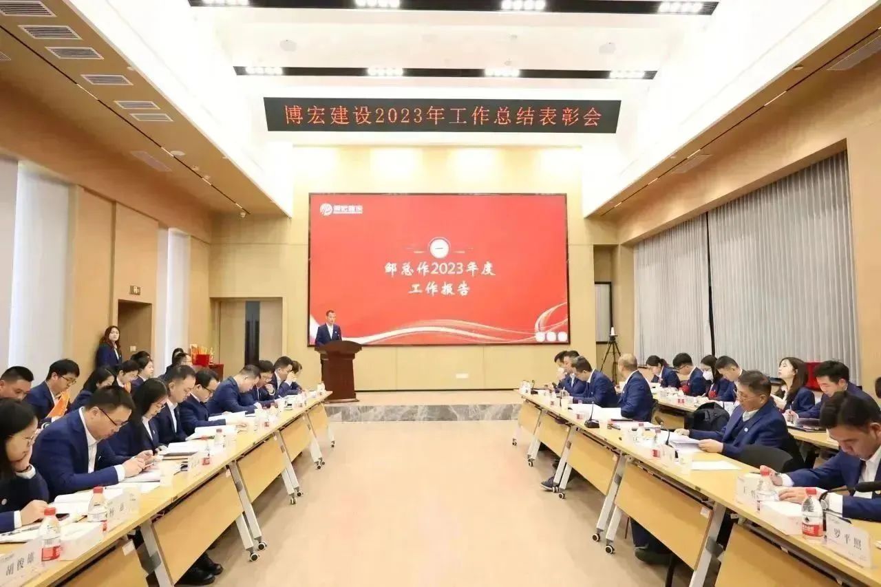1月26日-27日,博宏建設(shè)2023年工作總結(jié)暨2024年工作研討會在公司31樓會議室隆重召開。公司黨委班子、部門負(fù)責(zé)人、項目經(jīng)理和員工代表共84人參加會議。漢陽市政黨委書記、董事長嚴(yán)悌文受邀出席會議。會議由公司黨委副書記郭一清主持。