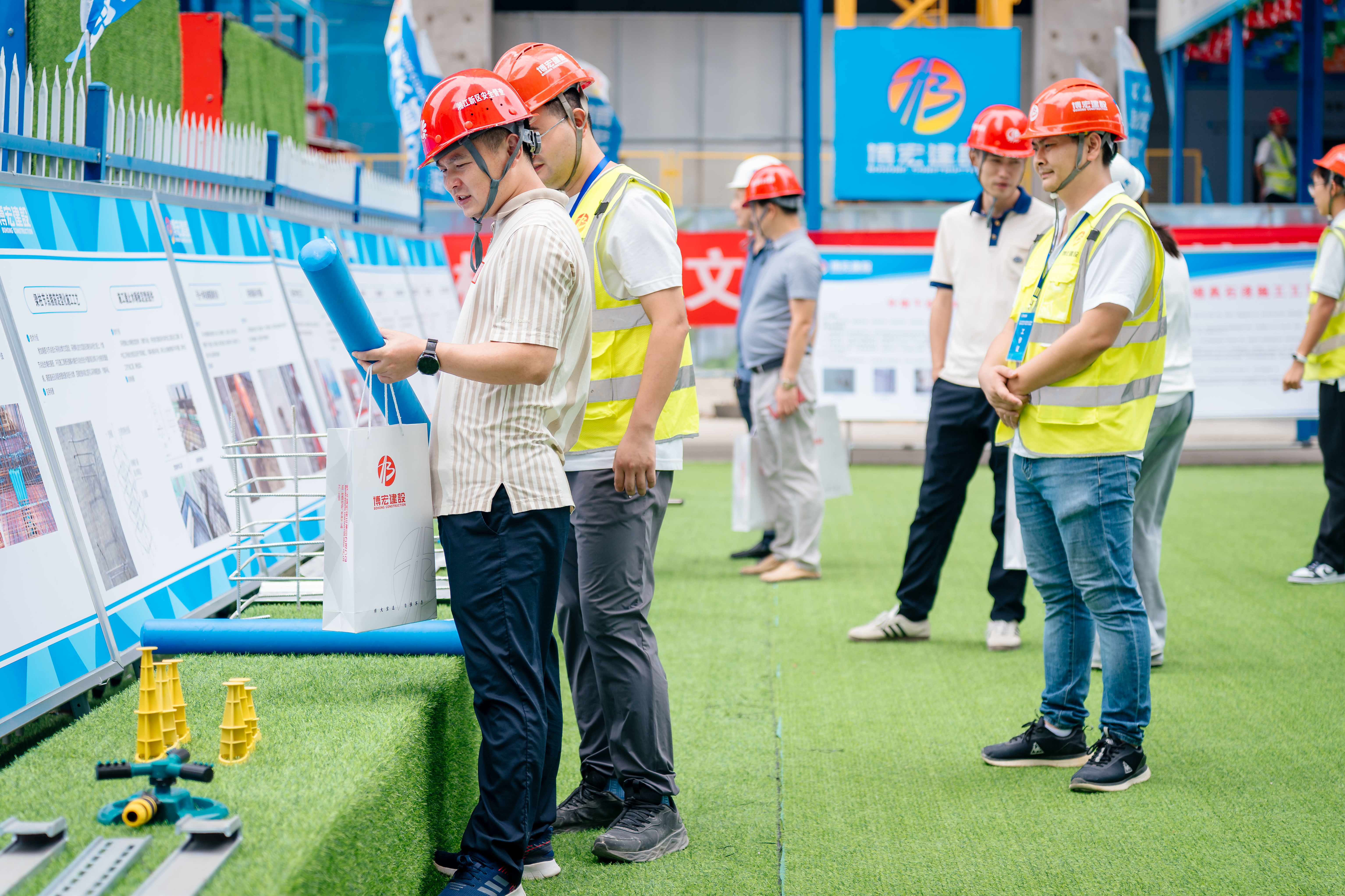 本次觀摩涵蓋安全文明標(biāo)準(zhǔn)化、工程質(zhì)量管控、智慧建造、綠色建造等重點內(nèi)容,設(shè)置智慧工地、實體樣板、精裝樣板、質(zhì)量工序樣板、安全體驗區(qū)、園林展示區(qū)、品質(zhì)地庫展示區(qū)等十大展區(qū)。在講解員的講述下,大家通過現(xiàn)場觀看、聽取解說、翻閱資料等方式,對項目各個標(biāo)準(zhǔn)化板塊進行深入學(xué)習(xí)和交流。